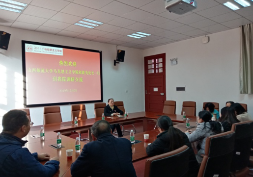 副院长张君出席交流。张院长首先介绍了学院的历史沿革、发展现状及教学改革的经验。之后双方就思想政治理论课教学改革、教师队伍建设、专题教学、实践教学等内容深入进行了交流。