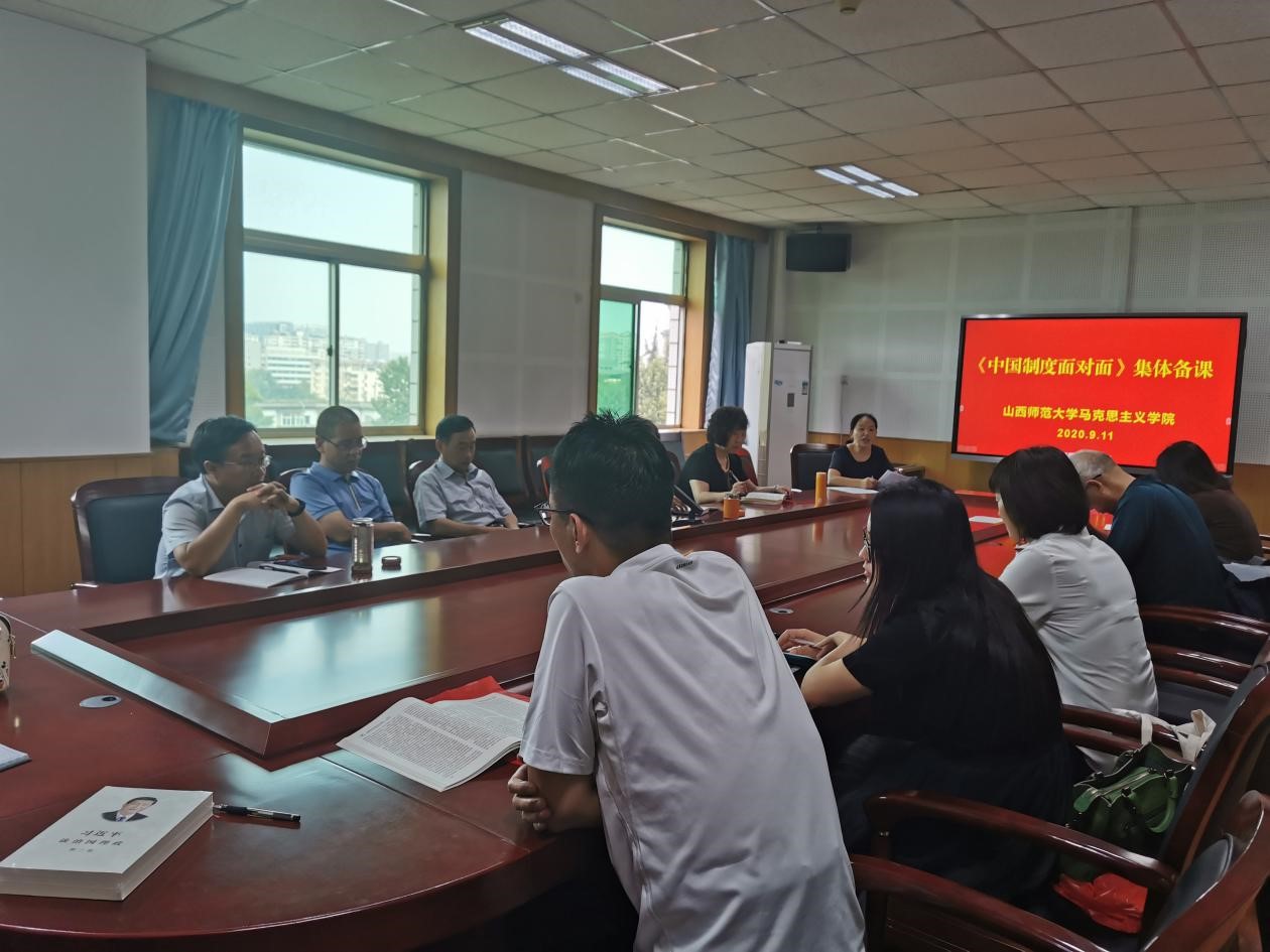 在科学会堂A508举行《中国制度面对面》集体备课会,活动教学副院长赵改萍主持。