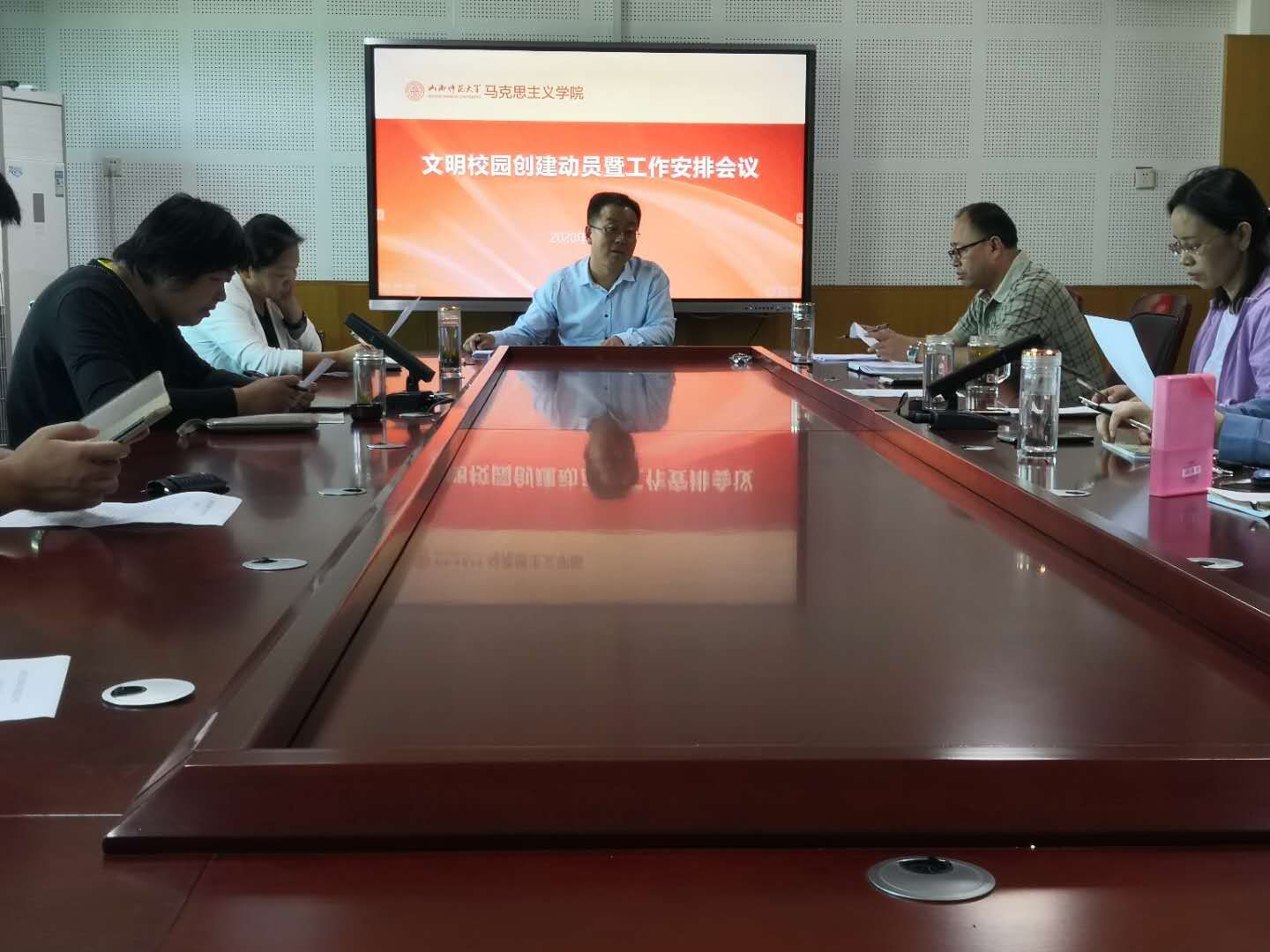 在科学会堂A508召开文明校园创建动员暨工作安排会议。学院文明校园创建领导小组全体成员参会,会议由院党委书记王银主持。