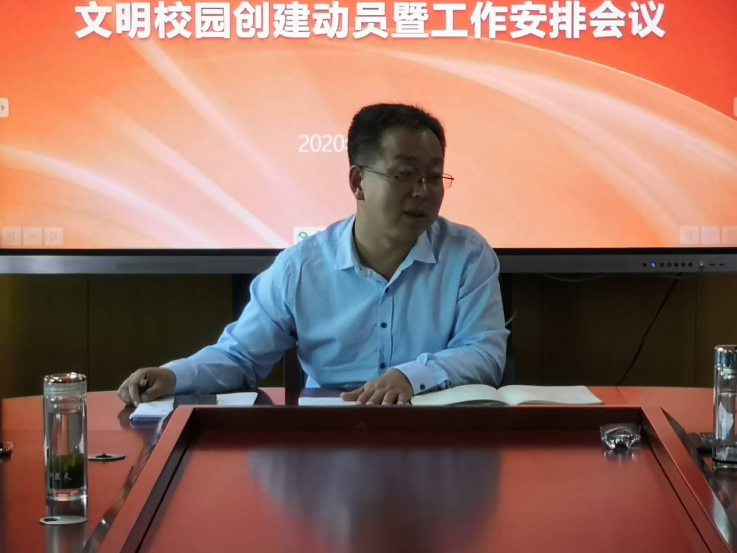 会议伊始,王银书记对文明校园创建工作进行动员。他在讲话中强调,文明校园是精神文明建设工作的重要载体,是一项系统性、综合性工程。开展文明校园创建工作,全体师生一要提高认识,快速行动,积极自觉参与其中;二要明确工作责任,知晓创建重点,发挥好主人翁作用;三要加强组织领导,走好群众路线和用好“一线工作法”,力戒形式主义,力求取得实效,真正解决当下校园存在的各种问题。