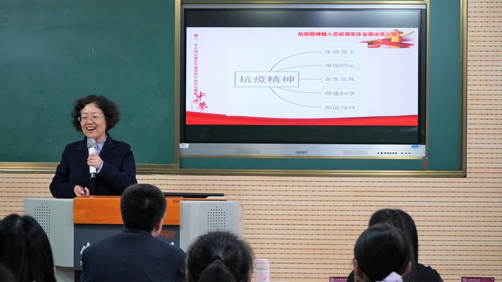 薛秀娟和李志龙9位老师进行展示,几位老师分别分享了所在院校的集体备课经验,并将抗疫精神和课程内容相结合,展示了抗疫精神进课程的备课成果,使在座的各位老师受益良多。