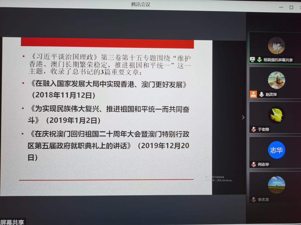 “守正创新”教工党支部在腾讯会议上开展支部“提高‘政治三力’,发扬‘三牛’精神”主题党日活动。支部全体党员及入党积极分子参加,会议由支部书记赵改萍主持。