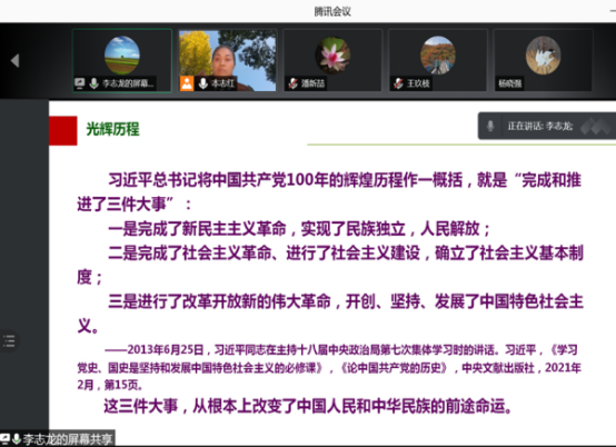 各教研室以“中国共产党始终不渝为人民的初心使命”为主题,于2021年3月13日—2021年18日以线上的形式开展集体备课。