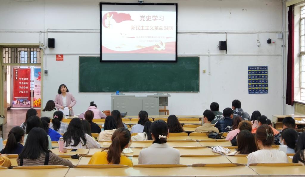 会上,支部书记张玉婷指出学习党史不仅要知道你看到了什么,更重要的是自己感受到了什么,以及要从党的初心使命、马克思主义中国化、坚定理想信念、党同人民的血肉联系和党的自身建设这五条线索来学习和体会《中国共产党简史》,加强理想信念。