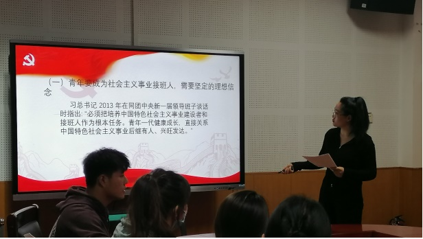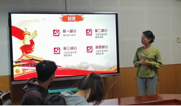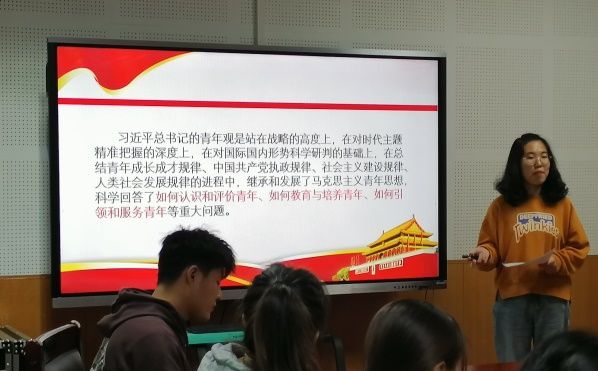 本次活动主要由郝昱成、冯波、马慧、刘敏、樊蓉和冯鑫六位同学进行分享,他们分别从不同的角度将习近平同志关于青年工作的重要思想向参会同学做了展示交流,其中包括:习近平青年观的基本内涵、习近平关于青年社会主义意识形态建设的重要论述、习近平关于引领大学生理想信念教育的重要论述、习近平对于青年人才培养的重视及要求的重要论述等。交流内容充实丰富,语言表达准确明晰,让人受益匪浅。