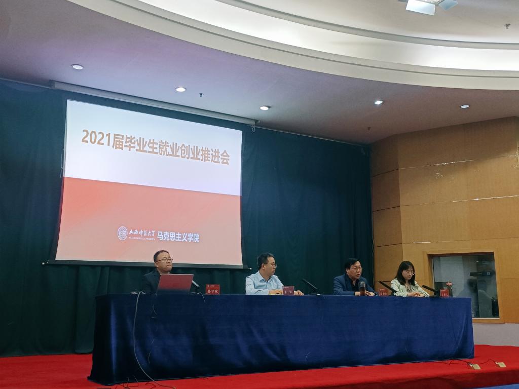 在科学会堂二层报告厅召开了2021届毕业生就业创业工作推进会,传达了学校2021年就业创业推进会相关会议精神。院党委书记王银,院党委副书记、院长贾绘泽,院党委副书记孙学虎出席会议,各毕业班级辅导员和全体毕业生参加会议。