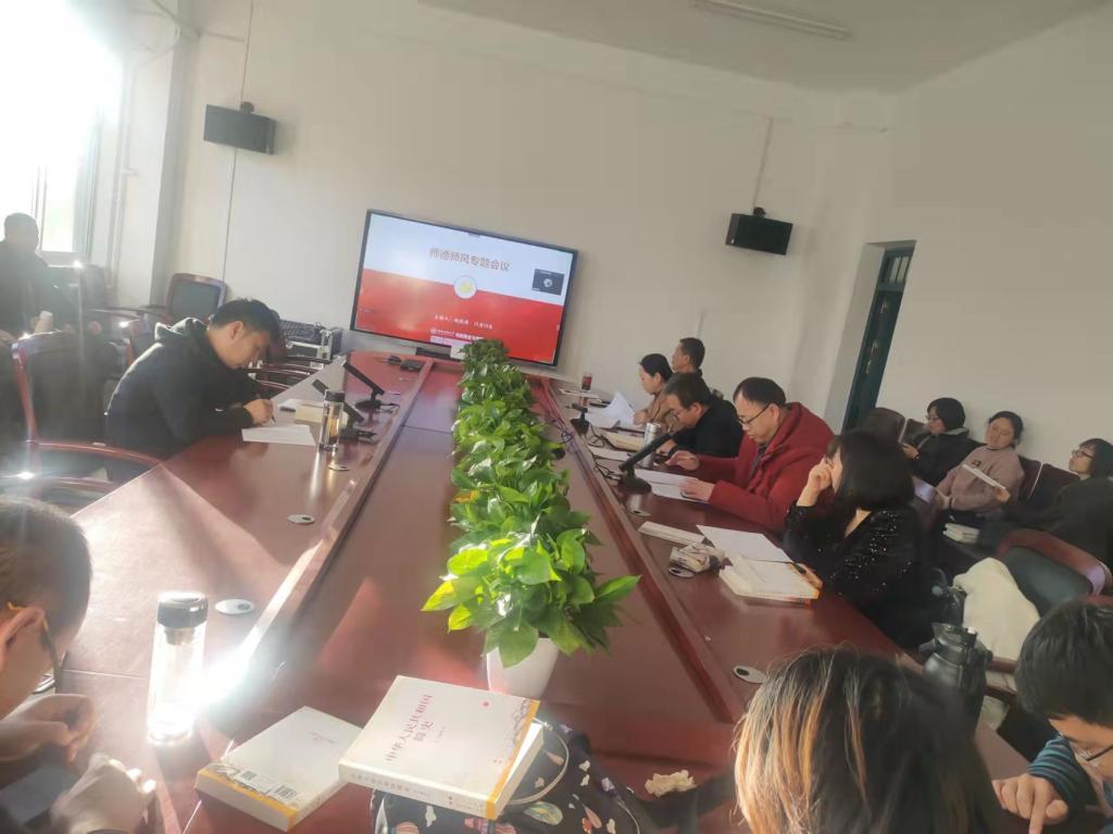 于南区1号楼506会议室召开师德师风建设专题会议,线上线下同步进行。学院党委书记王银主持会议,全体教职工参加会议。