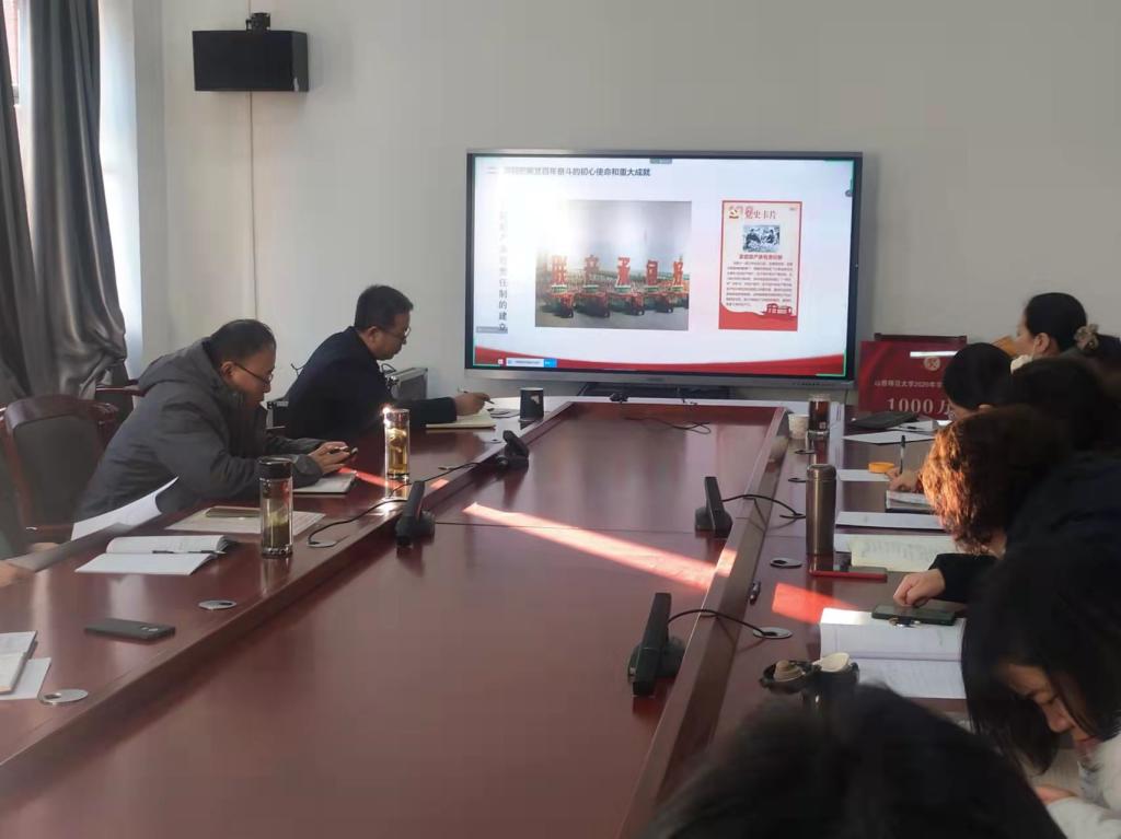 组织全体思政课教师于南区1号楼506会议室开展“周末理论大讲堂”第75讲学习研讨活动,线上线下同步进行。院党委书记王银主持会议。