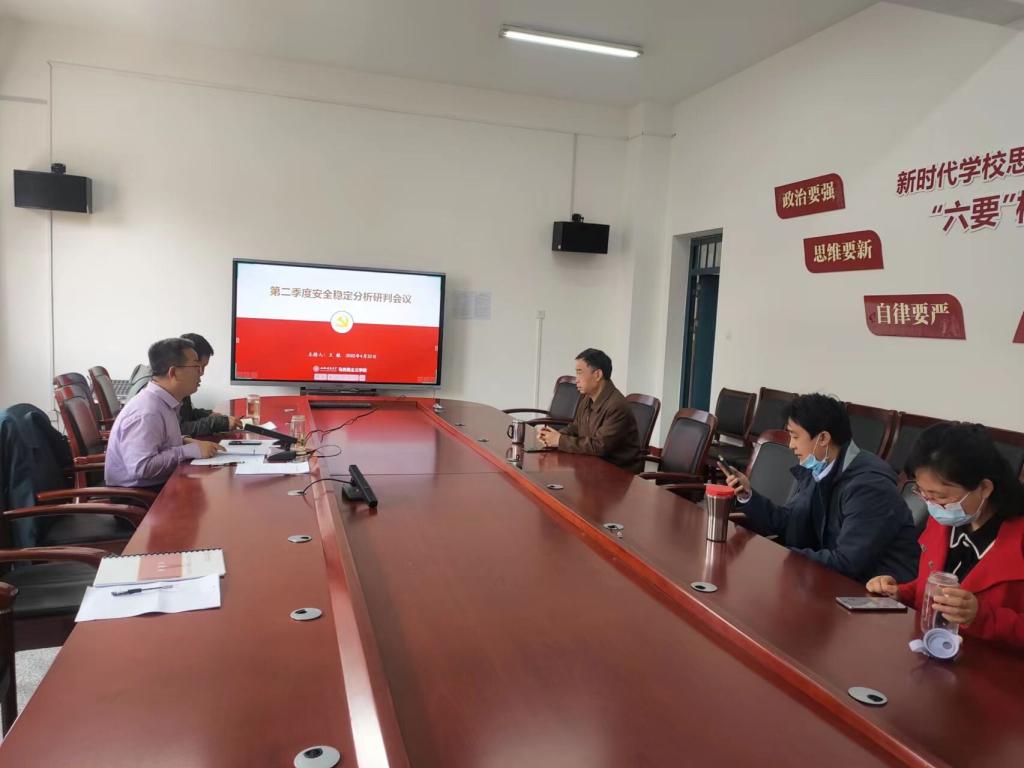 于南区1号楼506会议室召开全面从严治党及宣传思想工作会议,线上线下同步进行。院党委书记王银主持会议,全体教职工参加会议。