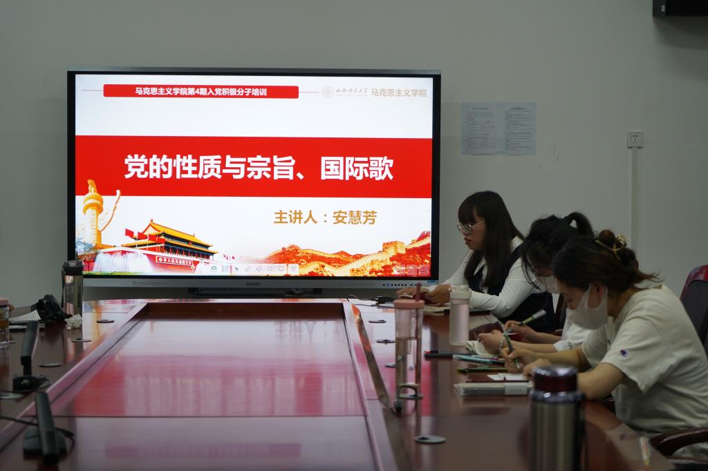 党委分党校于南区1号楼506会议室举行第4期入党积极分子培训班开班典礼,线上线下同步进行。院党委书记王银、院党委副书记孙学虎、院专职组织员安慧芳等出席,203名入党积极分子参加培训。安慧芳老师主持开班典礼。