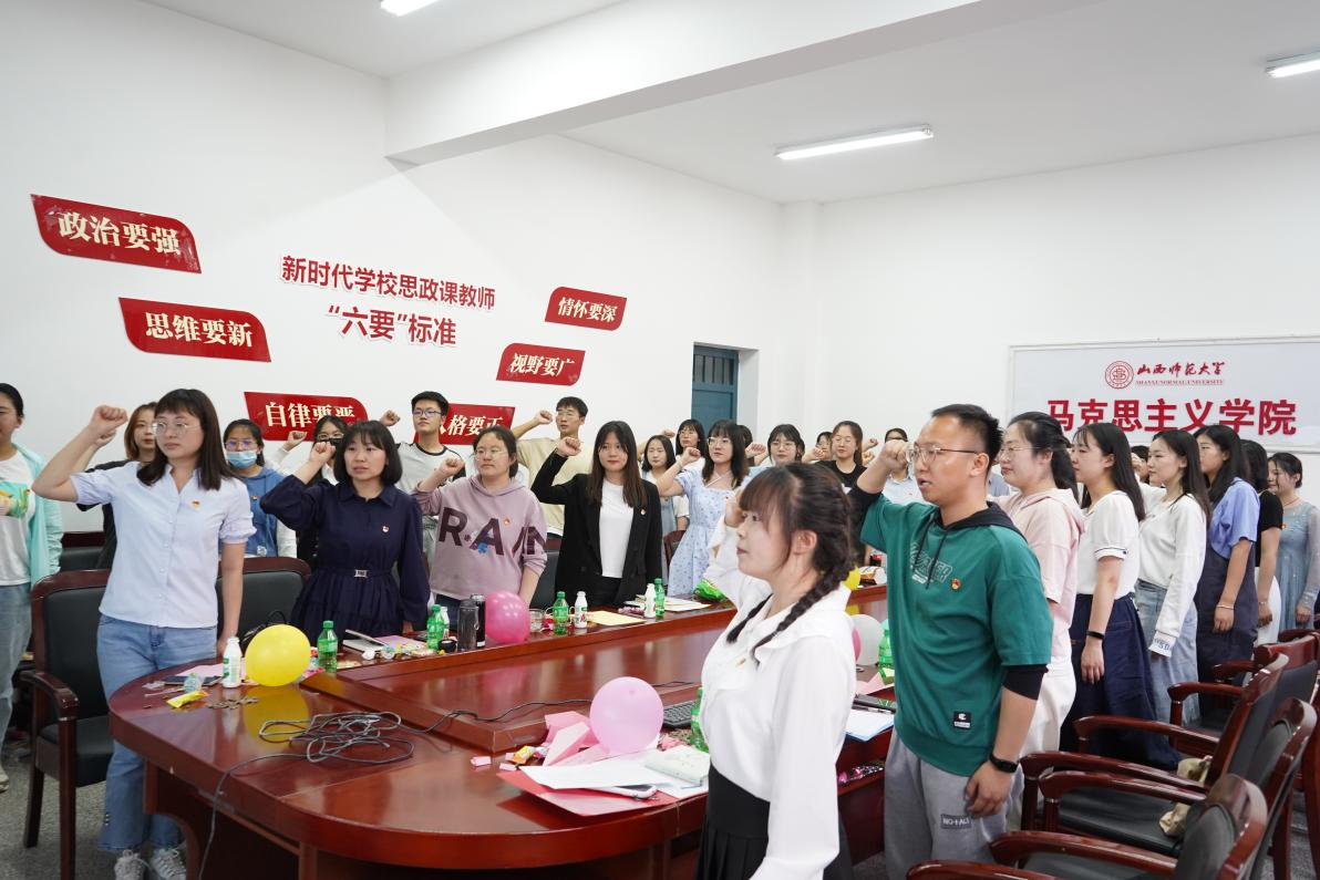 活动接近尾声,全体起立,与会同志在侯丁义同志的带领下举起右拳,重温入党誓词,铭记入党初心。
