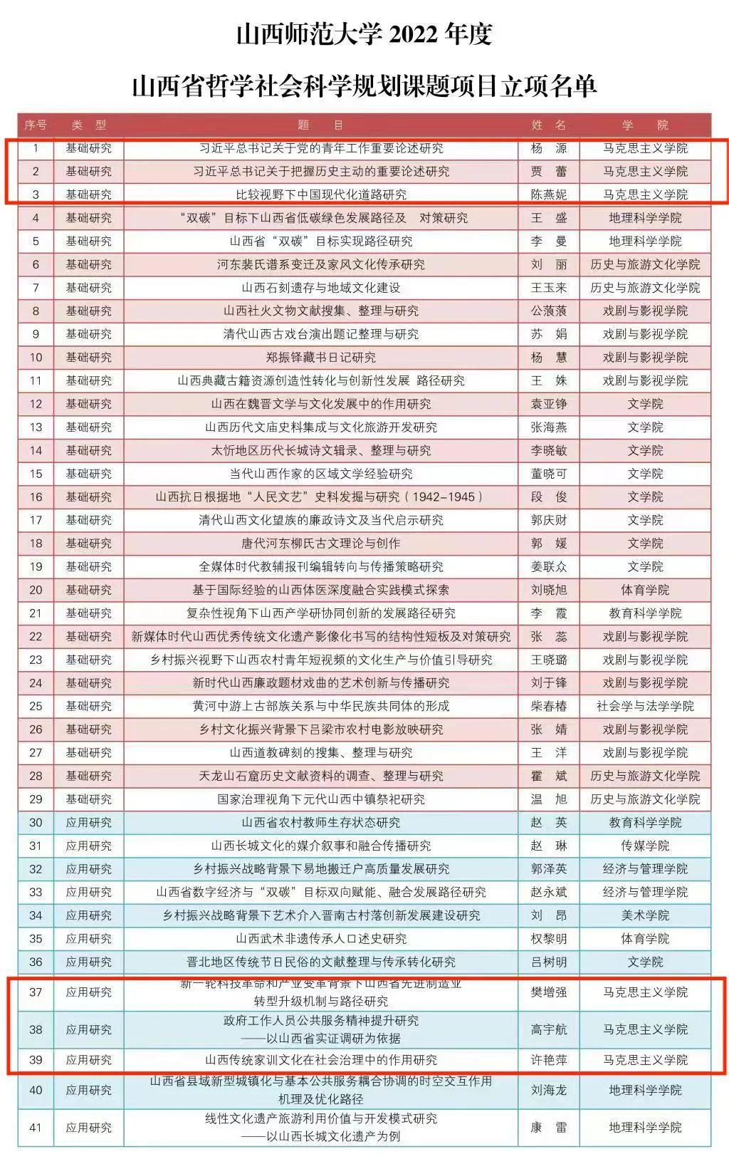 近日,2022年度国家社科基金高校思想政治理论课研究专项立项名单和山西省哲学社会科学规划课题项目评审结果公布。同人漫画 赵改萍副院长的《“两个确立”融入高校思政课教学的路径创新研究》获批国社科高校思政课研究专项一般项目,杨源、贾蕾、陈燕妮、樊增强、高宇航、许艳萍六位老师获批省哲社规划课题基础研究和应用研究项目。