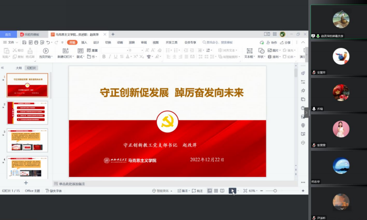 召开2022年度抓基层党建述职评议会议。全体学院党委委员、各党支部委员及3名学生代表参加会议,会议由院党委书记乔瑞主持。