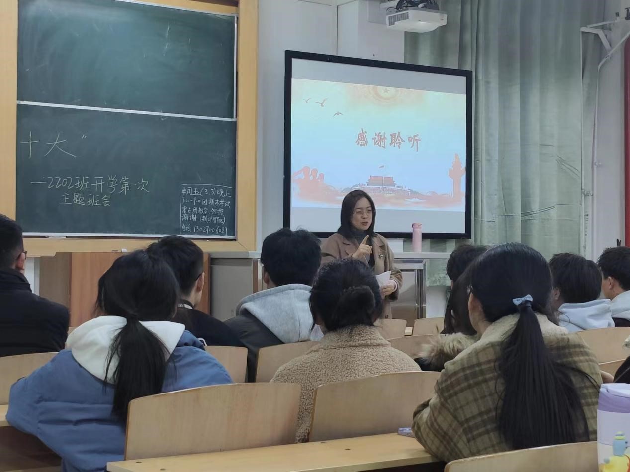 班会最后,张瑞琴老师充分肯定了此次班会的重要意义,并对大家学习生活中存在的困惑与问题做了耐心解答。这次主题班会的成功开展,使同学们进一步理解了党的二十大精神内涵,有利于青年学生更加坚定信仰信念信心,以理想者、担当者、吃苦者、奋斗者的姿态,奋进新征程,创造新业绩,为实现中华民族伟大复兴的中国梦而不懈奋斗!