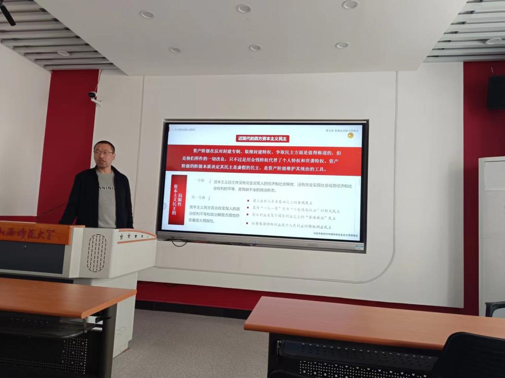 会上,老师们围绕“发展全过程人民民主”这一主题,从教材分析、学情分析、教学学法、教学重难点等方面进行了十分钟的说课,展示了不同的教学风格,演绎了不同的课堂精彩。