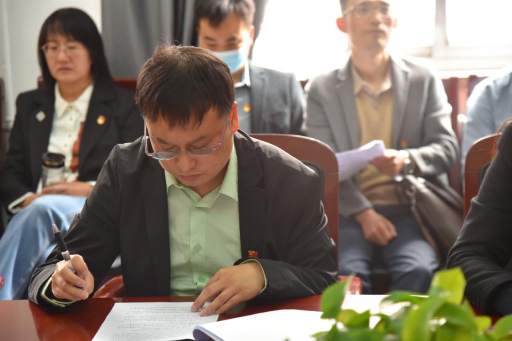 学习贯彻习近平新时代中国特色社会主义思想主题教育动员会在1号教学楼506会议室召开,全体教职工党员和部分学生党员代表参加了会议。院党委书记乔瑞作动员讲话,院党委副书记杜辉主持会议。