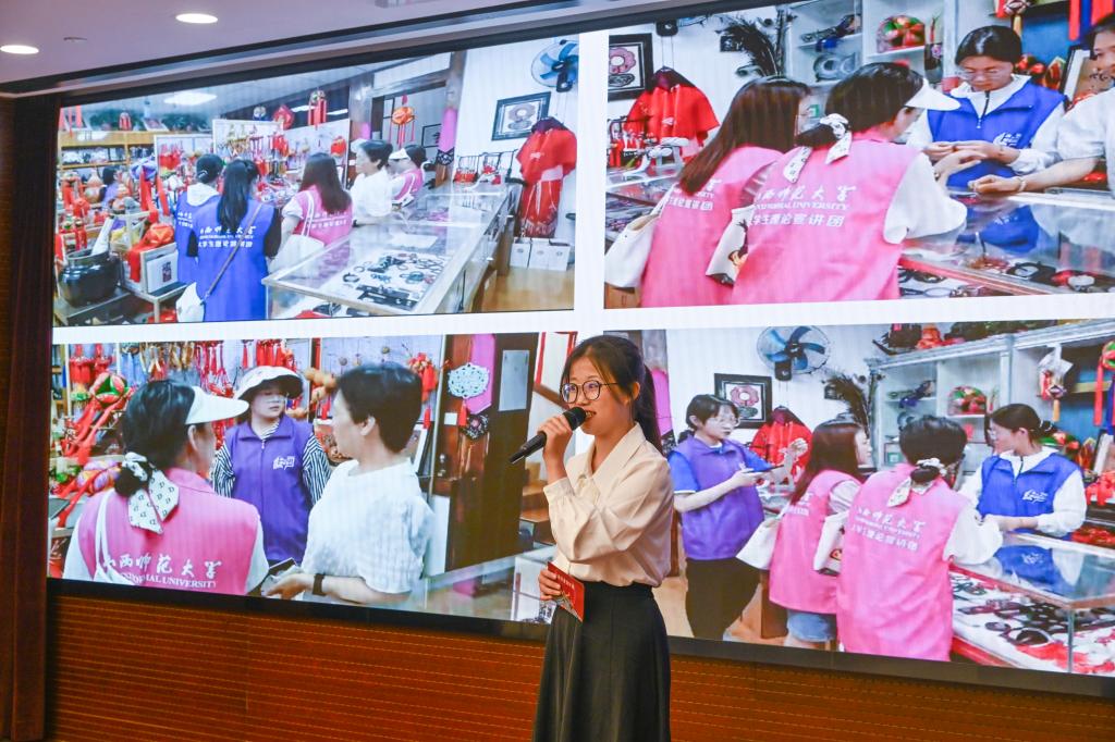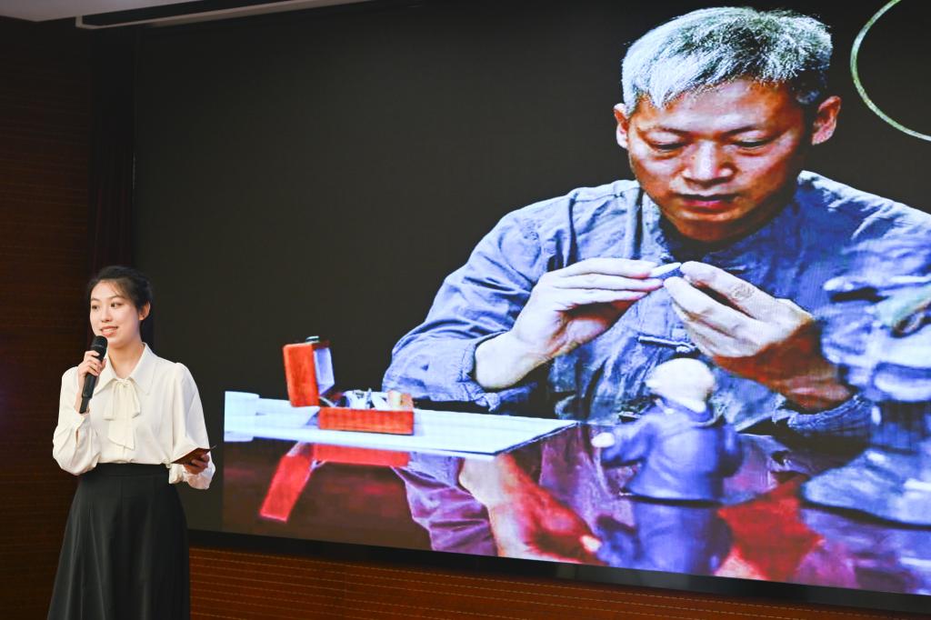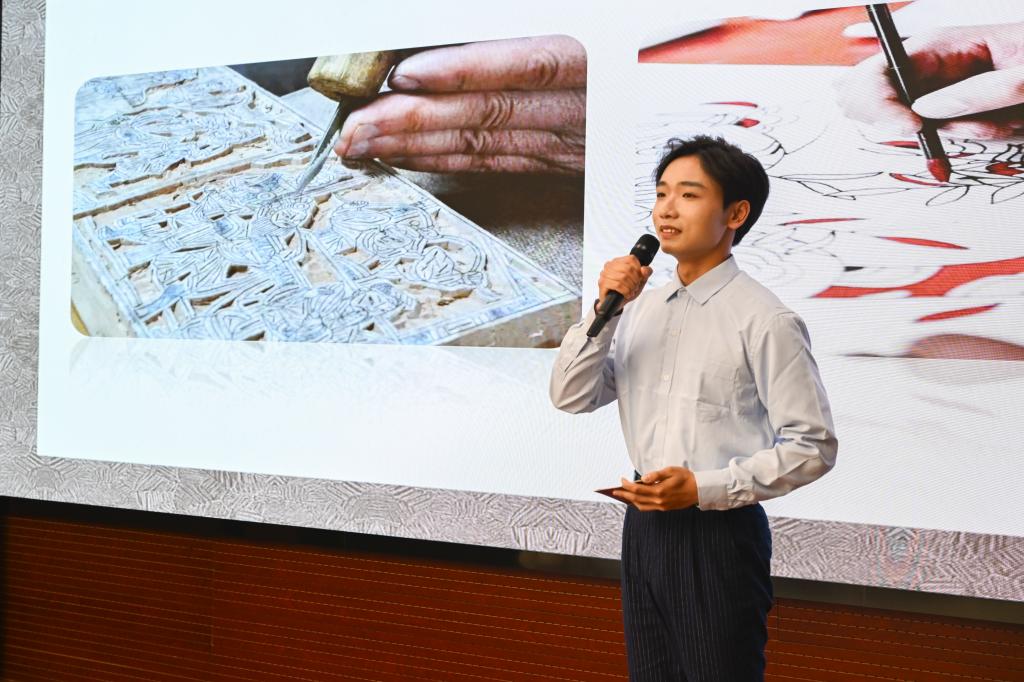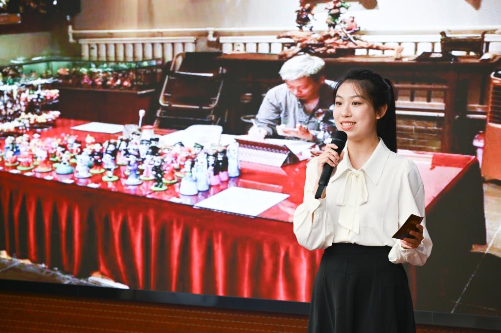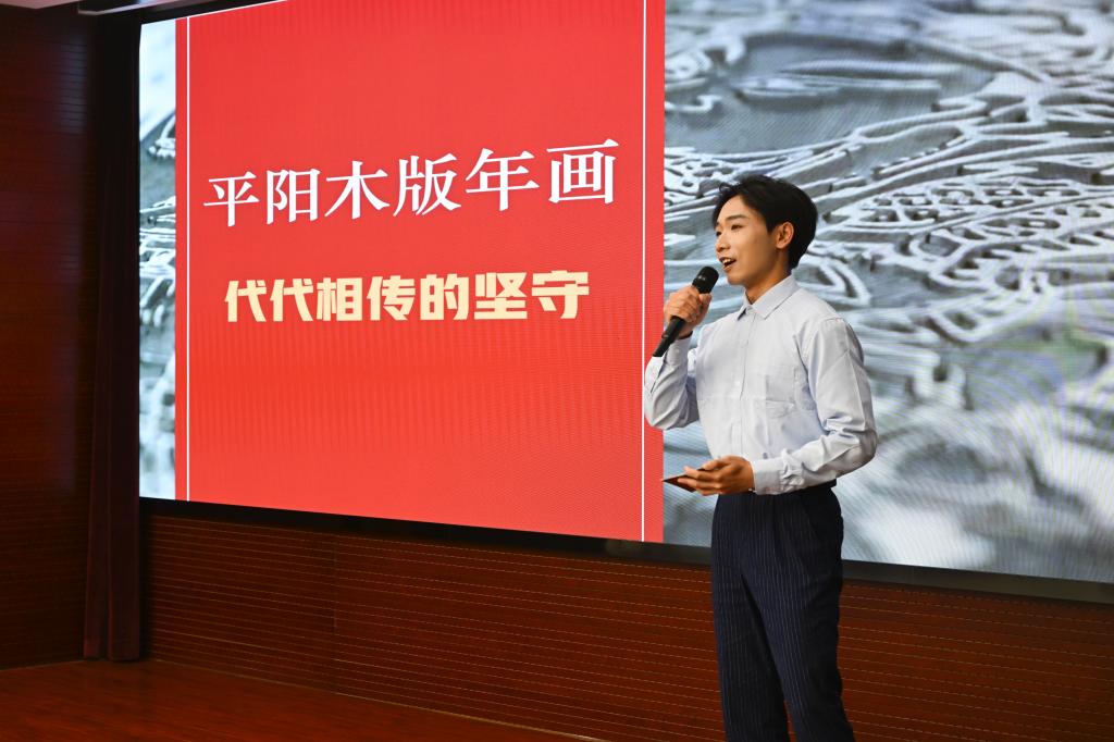 我校青年学生作为宣讲人,深情讲述了他们沿着习近平总书记考察调研山西的足迹,循着三晋大地历史文化脉络,深入省内10余个县市,对50余处非遗项目走访时的所见所闻所感。“老陈醋酿制技艺”沉淀匠心传承、“霍州年馍”成为霍州人“富口袋”的重要支柱、“左权开花调”创新推出宣传党的二十大精神的歌曲、“挠羊赛”展现出力量与智慧的较量……一个个具有鲜明地方特色的非遗展现出博大精深的文明、弦歌不辍的传承,视频、课件、音乐与宣讲相得益彰,为现场观众带来了全新的视听体验。