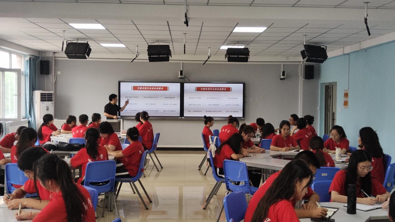 7月3日,我校青马骨干培训班在南区六号楼智慧教室208开展习近平新时代中国特色社会主义思想学习。此次理论学习特邀吉志强老师主讲,青马班辅导员张瑞琴老师主持,全体青马班学员参加。