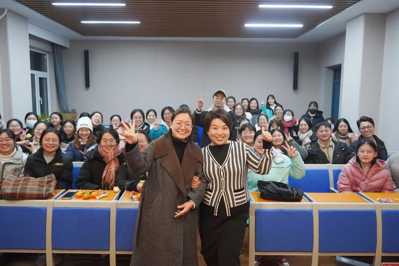 现场摆满了点心、水果、棒棒糖,还有每人一支考试用笔,座谈会在温馨且愉快的氛围中开始。座谈会第一项,赵改萍副院长为大家分析了今年考研的新形势,并将其概括为“少”和“严”,即考研人数减少,考试规则严格两个特点。随后,她结合自身考研经历,从树立必胜信念、调整作息规律、熟练答题技巧三方面对考生提出了殷切嘱托。