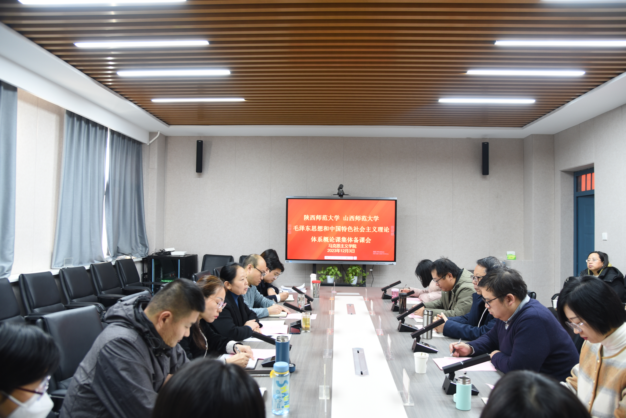 教学展示结束后,陕西师范大学张帆教授、阎树群教授从不同角度对选题、内容设置、讲课技巧等诸方面进行了精彩点评。他们对两位老师将教材体系成功转化为教学体系给予了充分肯定,并基于“内容为王”的原则,就如何选题、破题,如何表现理论高度,如何讲好故事等方面提出了进一步完善建议。随后,双方教师进行了深入的交流研讨。