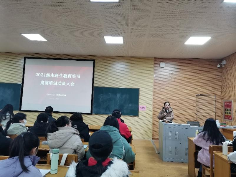 于2024年1月10日至12日针对2021级206名师范生开展教育实习岗前培训。培训共分两个阶段,第一阶段由学院统一组织实习学生聆听专家讲座,第二阶段安排实习学生强化教学技能训练。