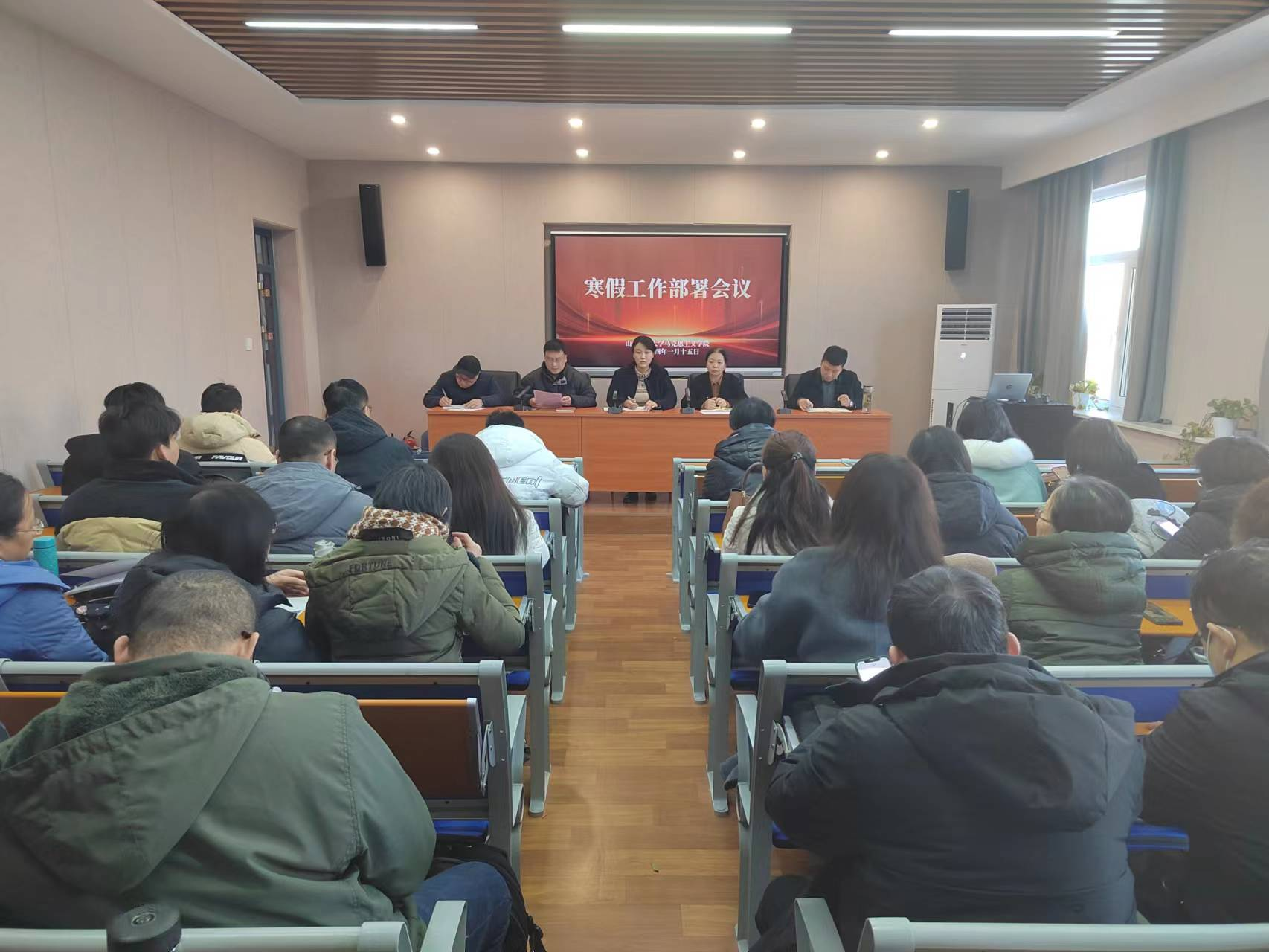 在1505会议室召开寒假工作部署会。院党委书记乔瑞主持会议,全体教职工参加会议。