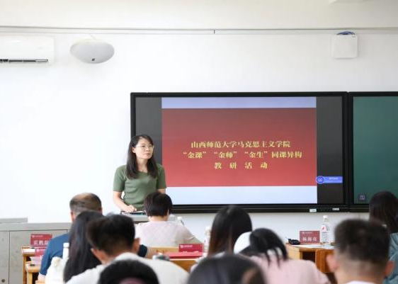 2022级思想政治教育专业本科生刘杰璐和太原市成成中学胡丽萍老师,本科生李百惠和太原市六十中学校冯涛老师,本科生李亚峰和临汾一中袁彪老师,本科生蔡朋均同学与榆次二中张晓璇老师分别围绕“法定继承有顺序”“我国政府的经济职能”“公正司法”“在个人与社会的统一中创造和实现价值”四个主题开展同课异构教学展示,老师和学生的精彩表现赢得在场师生的阵阵掌声。