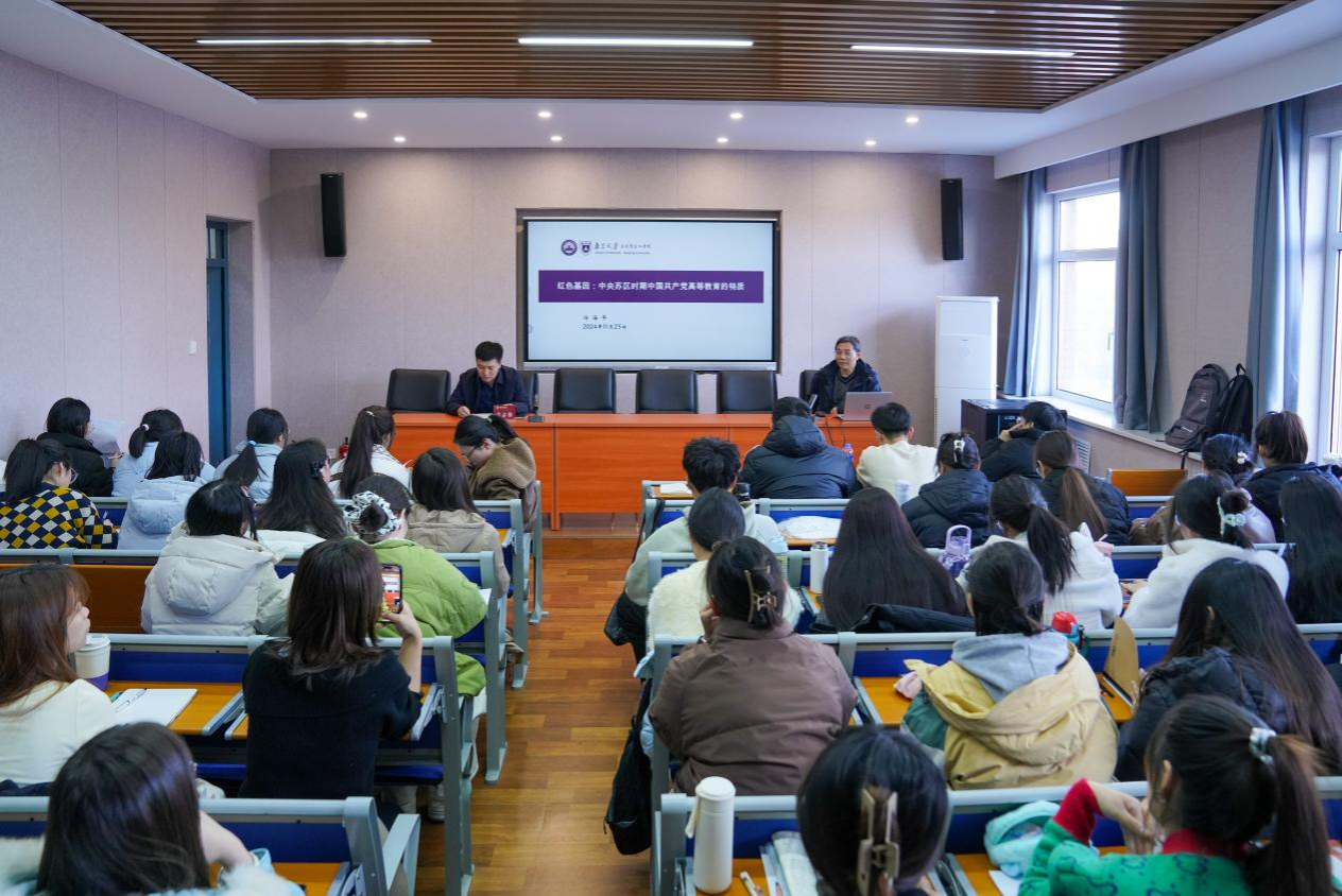 由吉志强副院长就游海华教授的基本情况作了介绍。游海华教授《红色基因:中央苏区时期中国共产党高等教育特质》为题,从研究缘起、研究背景、研究内容三个方面展开报告。