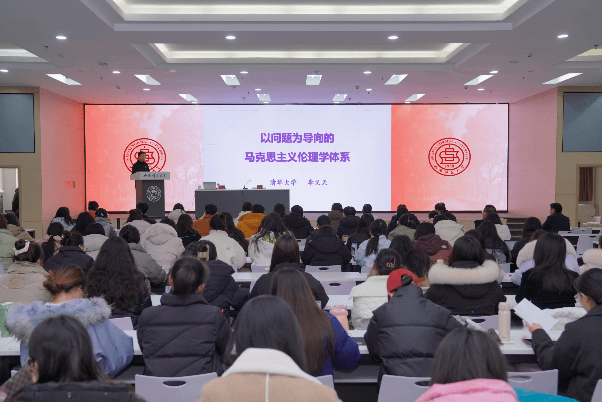 长聘教授、博士生导师李义天应学院邀请在北区毓秀学堂作了题为《以问题为导向的马克思主义伦理学体系》学术讲座。讲座由副院长张昭主持,学院部分教师、马克思主义理论专业和哲学专业硕士、博士研究生共同参加。