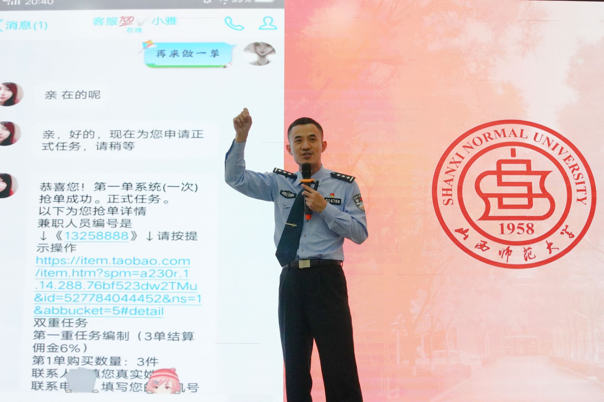 在讲座中,王警官以近期太原市高校频发的电信网络诈骗案件为切入点,采用“以案释法”的形式,讲解了常见的诈骗手段,提醒师生切勿轻信“低门槛高回报”“公检法保密转账”等诱导性话术,务必做到“不轻信、不透露、不转账”。在普及反诈知识的同时,王警官还引用了近期境外间谍组织通过社交媒体诱骗高校学生窃取涉密信息的真实案例,警示师生警惕网络交友中的“糖衣炮弹”。他强调要严守学术科研数据、军事设施信息等国家机密,并鼓励师生主动举报可疑线索,共同织密国家安全防护网。