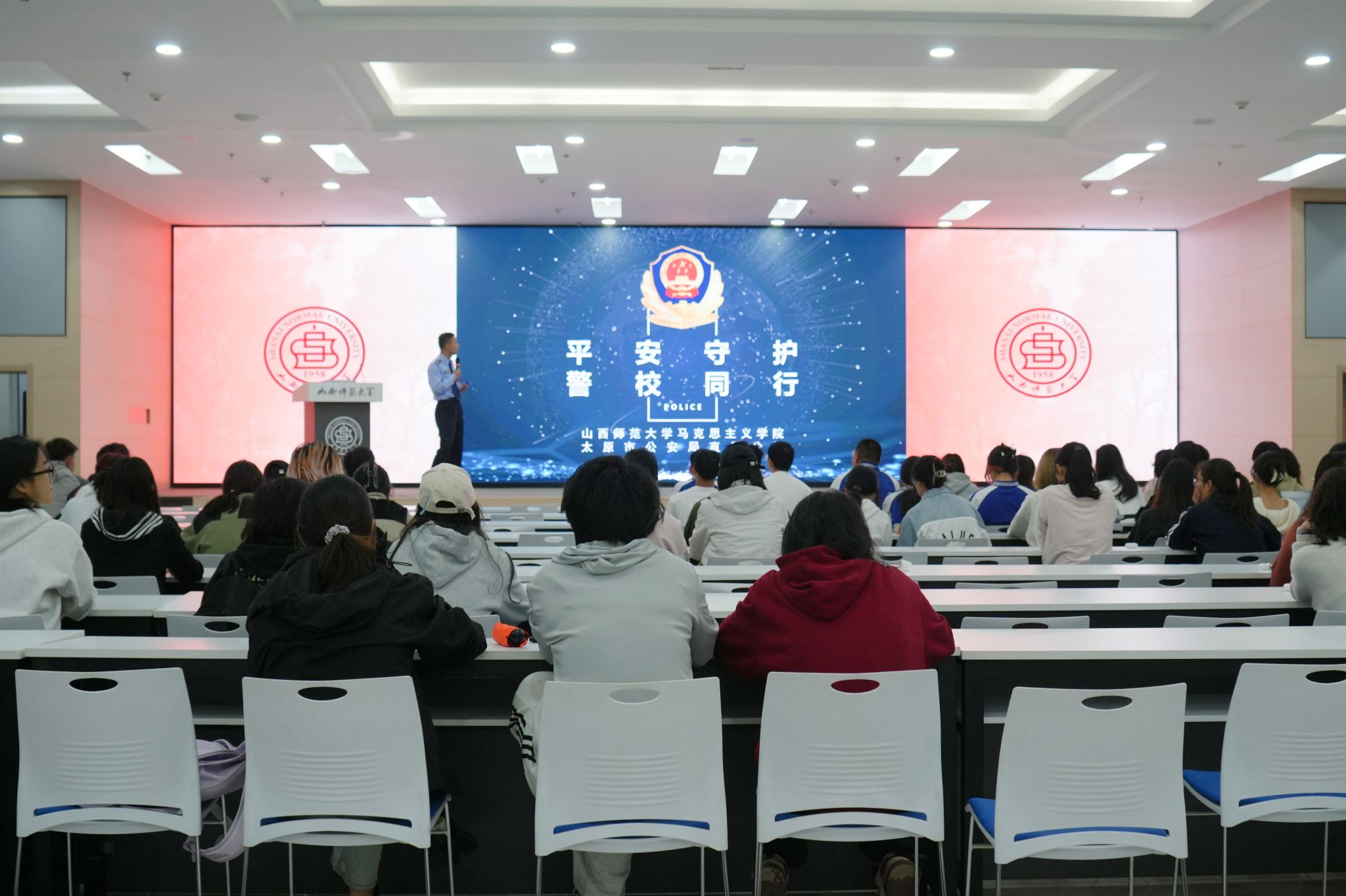 与初心社区在北区2号教学楼毓秀学堂共同举办了“平安守护,警校同行”防范电信诈骗专题讲座。本次讲座特邀太原市公安局直属分局的王警官担任主讲,2024级学生代表参加。