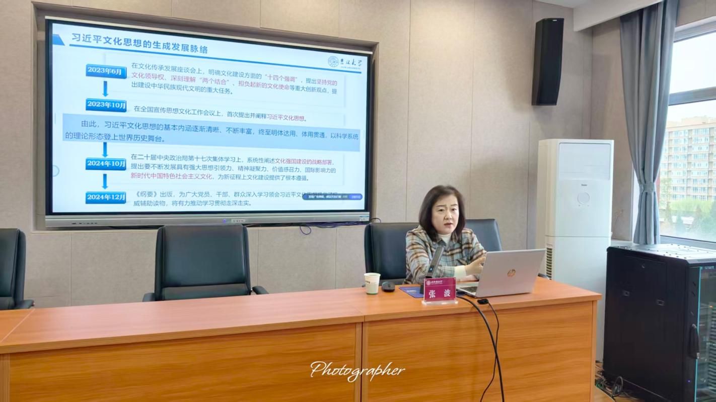 1505会议室作题为《习近平文化思想的科学体系和战略意义》的学术讲座。部分师生代表参加。