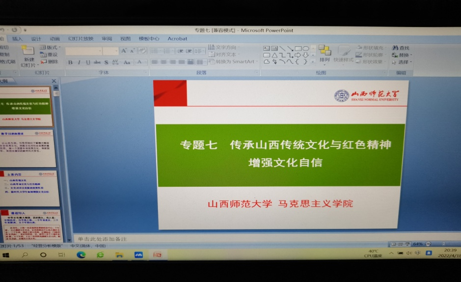 薛秀娟老师分享了“传承山西传统文化与红色精神,增强文化自信”专题的教案设计及教学经验。
