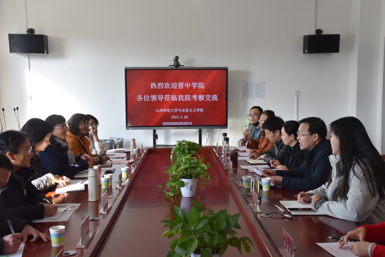 开展考察交流。副校长贾绘泽、学院党委书记乔瑞、副院长赵改萍、副院长赵秀芳、副院长吉志强及思政系主任、部分教研室主任参加会议。贾绘泽副校长主持会议。