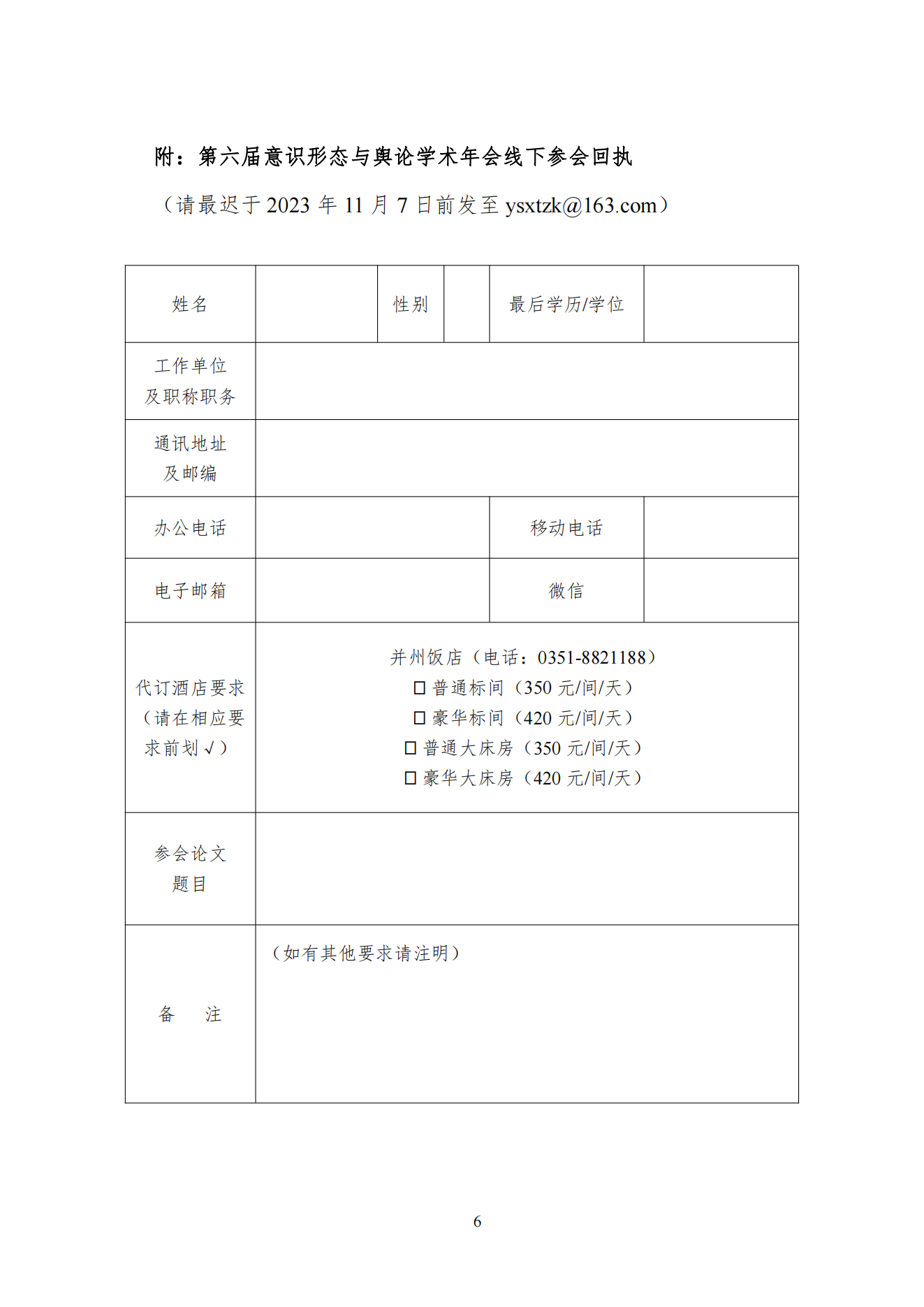 第六届(2023)意识形态与舆论学术年会 暨山西智库发展论坛通知