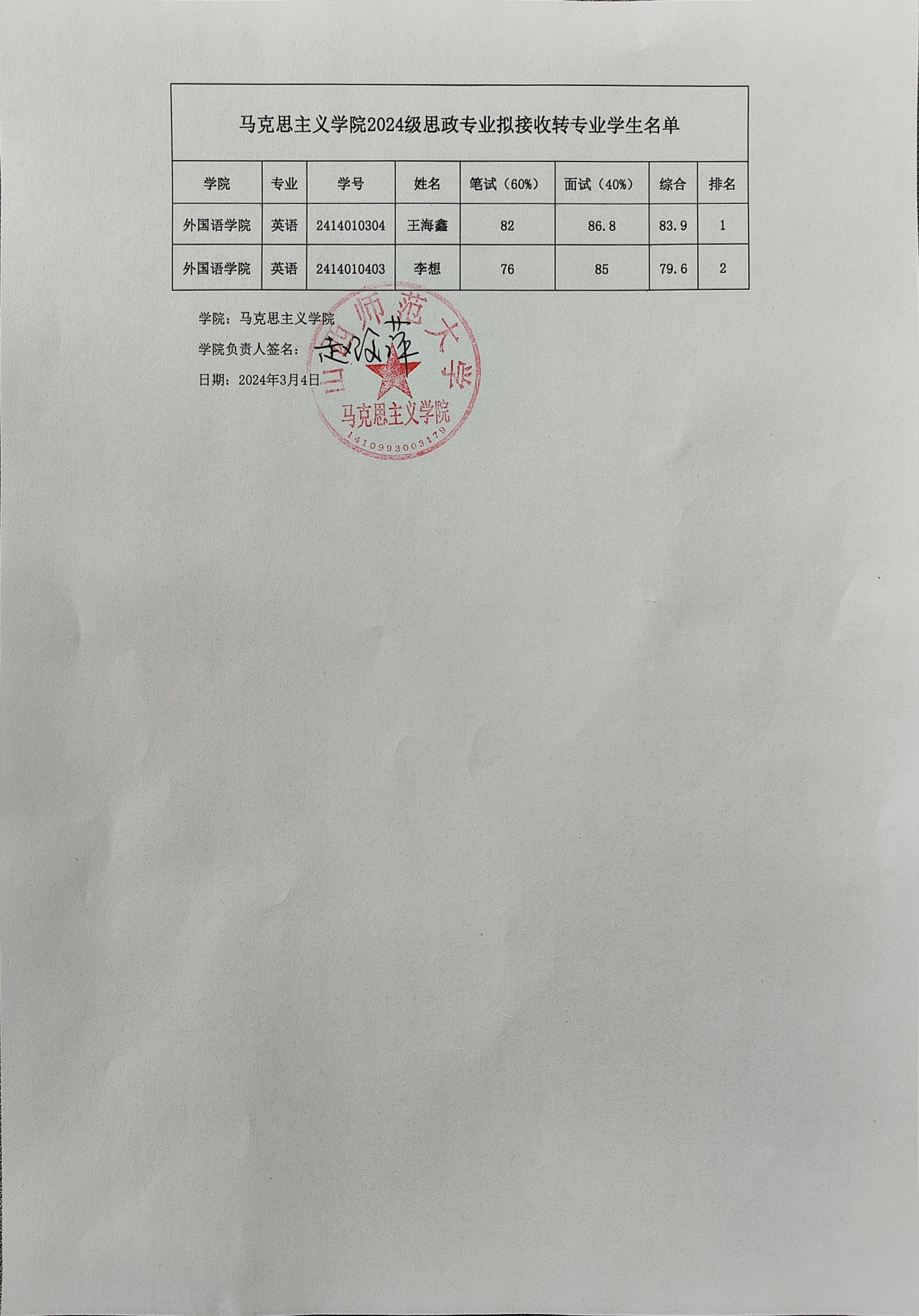 同人漫画 2024级思政专业拟接收转专业学生名单
