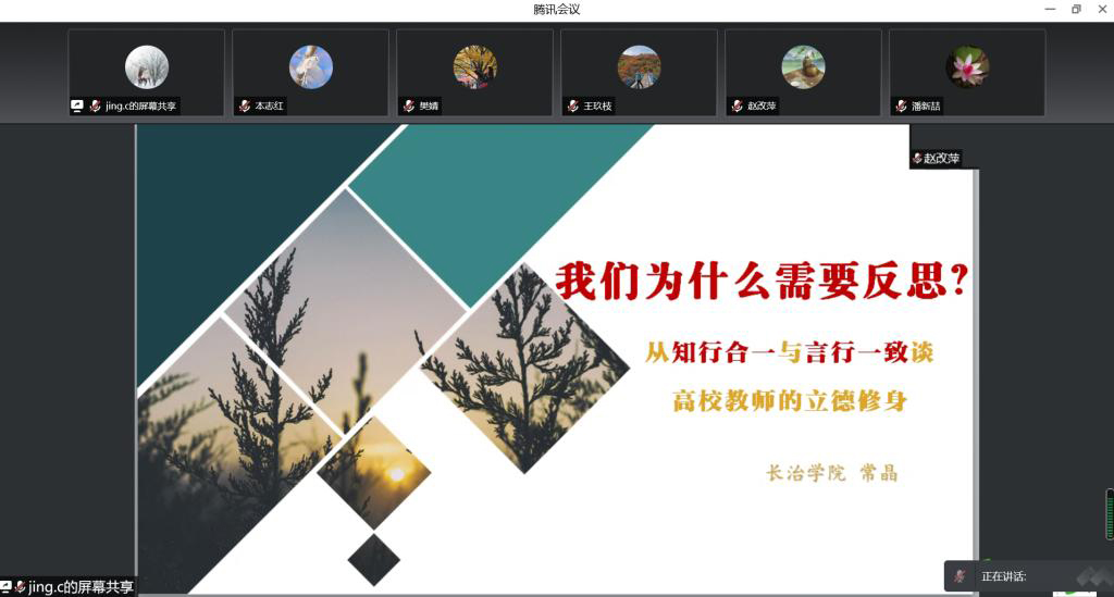 常晶教授作了《我们为什么需要反思——从知行合一与言行一致谈高校教师的立德修身”》的主题报告。常晶教授深刻阐述了新时代高校师德建设的重大意义,并结合习近平总书记关于师德师风重要论述和典型案例,解读了高校教师做到知行合一和言行一致的着力点。