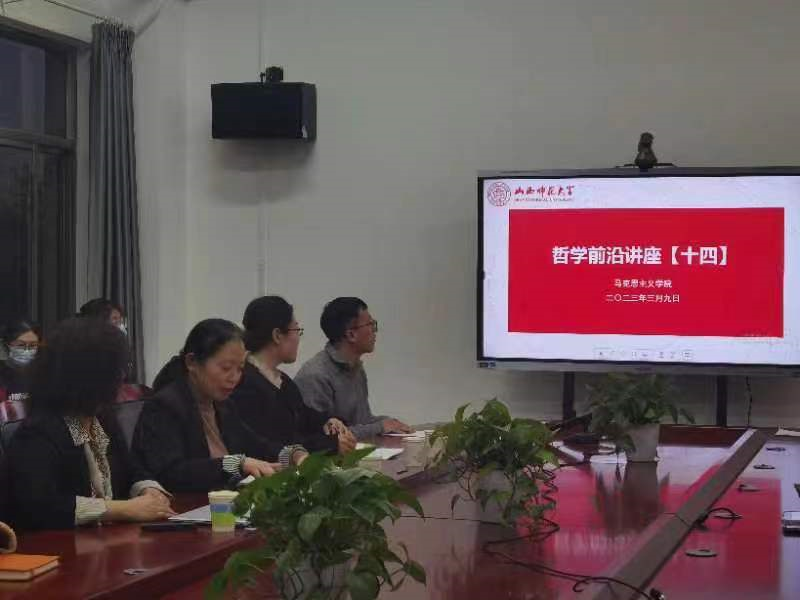 第十四次“哲学前沿讲座”。哲学专业全体一二年级研究生参加,副院长赵改萍主持。