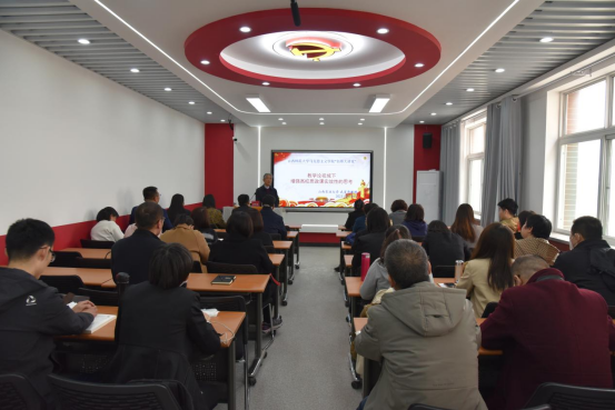 全体思政课教师作报告,报告会在南区8号楼418会议室举行,由副院长赵改萍主持,全体思政课教师聆听了报告。