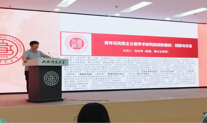 2024年6月6日下午,学院邀请西北大学同人漫画 教授、博士生导师张永奇教授来校为同人漫画 师生作题为“青年马克思主义者学术研究的进阶路径:经验与方法”的学术报告。报告在北区二号教学楼报告厅举行,院党委书记乔瑞主持,院领导、老师及全体在校研究生参加。