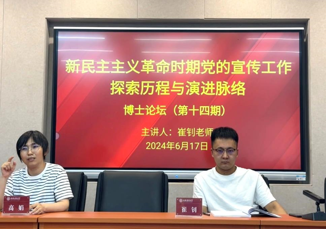 其次,崔钊老师作了题为《新民主主义革命时期党的宣传工作探索历程与演进脉络》的报告。第一,他从中国共产党成立初期、大革命时期、土地革命时期、抗日战争时期和解放战争时期五个历史节点系统梳理了党的宣传工作的萌芽、发展和成熟过程,并论述了党的宣传工作取得重大成就的原因和存在的不足,强调党的宣传工作的成功开展对新民主主义革命的伟大胜利有着不可替代的重要作用。