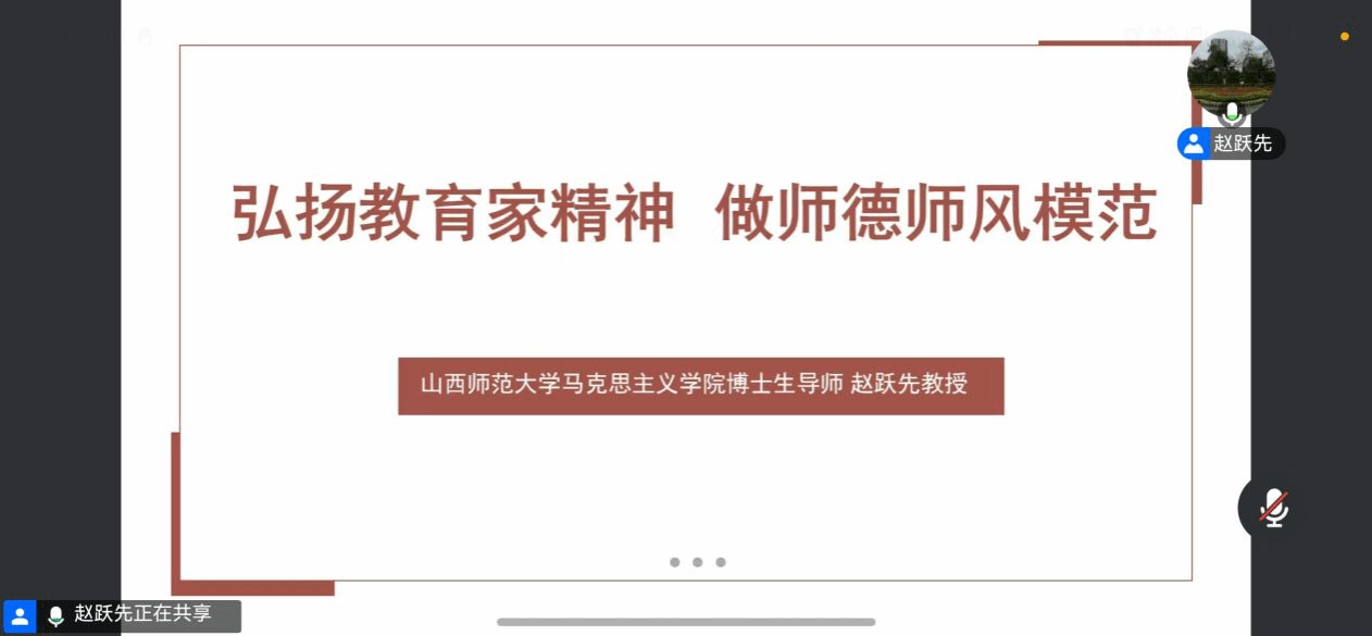 会上,赵跃先教授围绕“弘扬教育家精神 做师德师风模范”这一主题,从教育家精神内涵解读、习近平总书记关于师德师风的重要论述、弘扬教育家精神加强新时代高素质教师队伍建设、教师师德师风建设的核心内容和提升途径四个方面进行了系统全面的讲解。他凭借渊博的学识修养、深厚的理论功底与丰富的从教经验,对教育家精神作了富有创见的解读,为思政课教师努力成为“经师”“人师”相统一的“大先生”提供了重要指引。