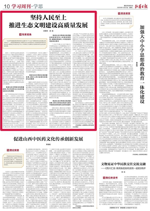 另一方面,以人民为价值实现的主体,激发全体人民群众共同参与推动生态文明建设高质量发展。当前,生态文明建设正处于压力叠加、负重前行的关键期,已进入提供更多优质生态产品以满足人民日益增长的优美生态环境需要的攻坚期,也到了有条件有能力解决生态环境突出问题的窗口期。推进生态文明建设必须处理好外部约束和内生动力的关系,应激发起全社会共同呵护生态环境的内生动力。进一步从理论上深化社会主义生态文明价值理念研究,提炼标识性理论话语,为全社会强化生态价值共识提供学理支撑;创新生态文明宣教形式,在全社会弘扬整体利益观、绿色消费观、劳动幸福观等与生态文明相适应的价值观念,引导社会成员形成低碳环保、文明健康的生活方式和消费模式,不断提高人民群众的生态文明素养;健全激励多元化主体发挥作用的平台机制,健全绿色发展为导向的科学考核评价体系,完善多元化市场投入机制,因地制宜拓展生态产品价值实现渠道,用好绿色财税金融政策,调动政府、企业、群众全社会积极参与生态保护和修复;健全环境信息公开制度和生态文明领域的民主决策、监督举报机制,提升人民群众参与决策监督的广度深度。