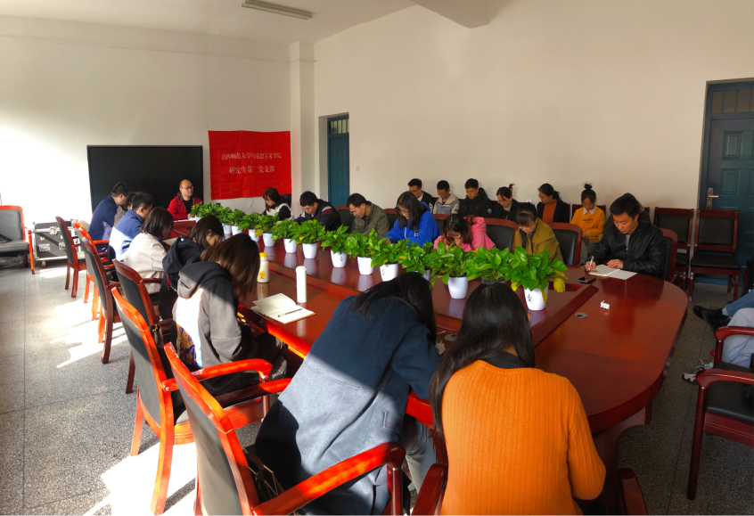 研究生第二党支部在1号教学楼506办公室召开支部大会。杨海亮书记主持会议,支部全体党员参加会议。