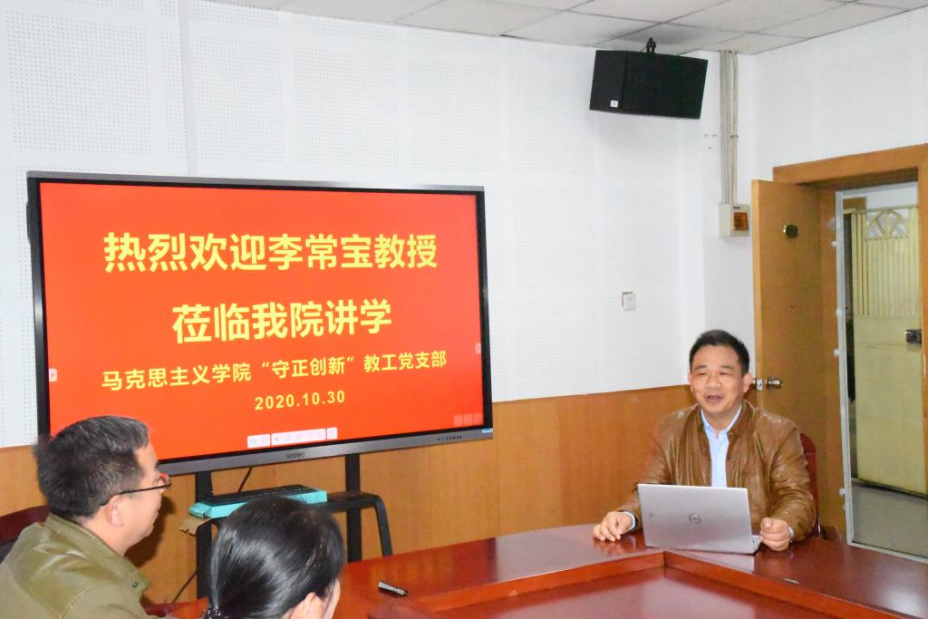 “守正创新”教工党支部在科学会堂A508会议室开展纪念中国人民抗日战争暨世界反法西斯战争胜利75周年主题党日活动。本次活动特邀我校历史与旅游文化学院李常宝教授作了《黎明前的黑暗:中共太行抗日根据地之1943年》的专题报告。此次主题党日活动由支部书记赵改萍主持,支部全体党员和入党积极分子参加。
