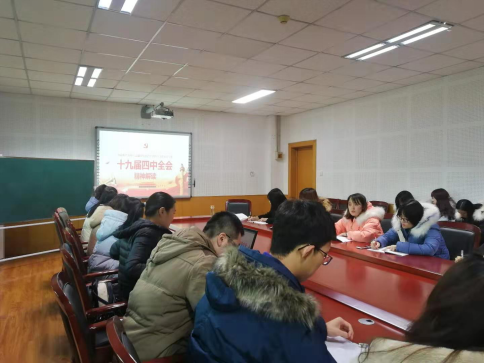 研究生第一党支部在科学会堂A-508会议室开展以“学习党的十九届四中全会精神“为主题的系列党日活动。全体党员参加学习,支部书记王艳主持。