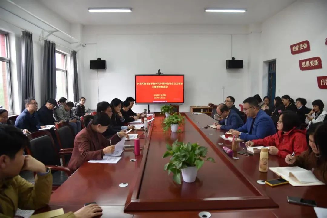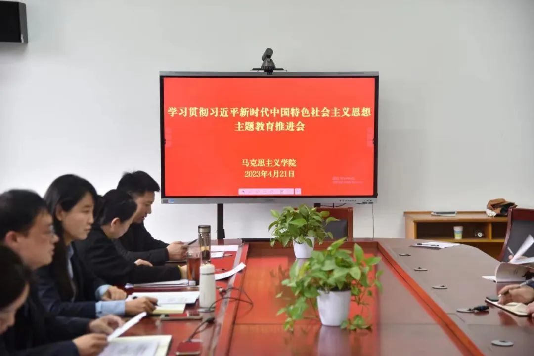 在1号教学楼506会议室召开学习贯彻习近平新时代中国特色社会主义思想主题教育工作推进会。学院全体教职工参加会议,会议由院党委副书记杜辉主持。