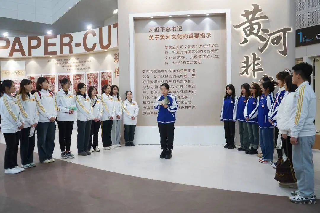 聆听黄河声音,探寻千年传承。在讲解志愿者的带领下,同学们走进历史深处,在一段段传奇的神话故事中,在一处处神秘的远古文明里,沿着中国上下五千年悠久的历史脉络,开启了一段精彩的大河溯源记。同学们身临其境,从织、器、居、食、行等多个方面与古人展开了一场心与心的对话,感受着来自大河的馈赠,沉浸于东方大国深厚的文化底蕴。