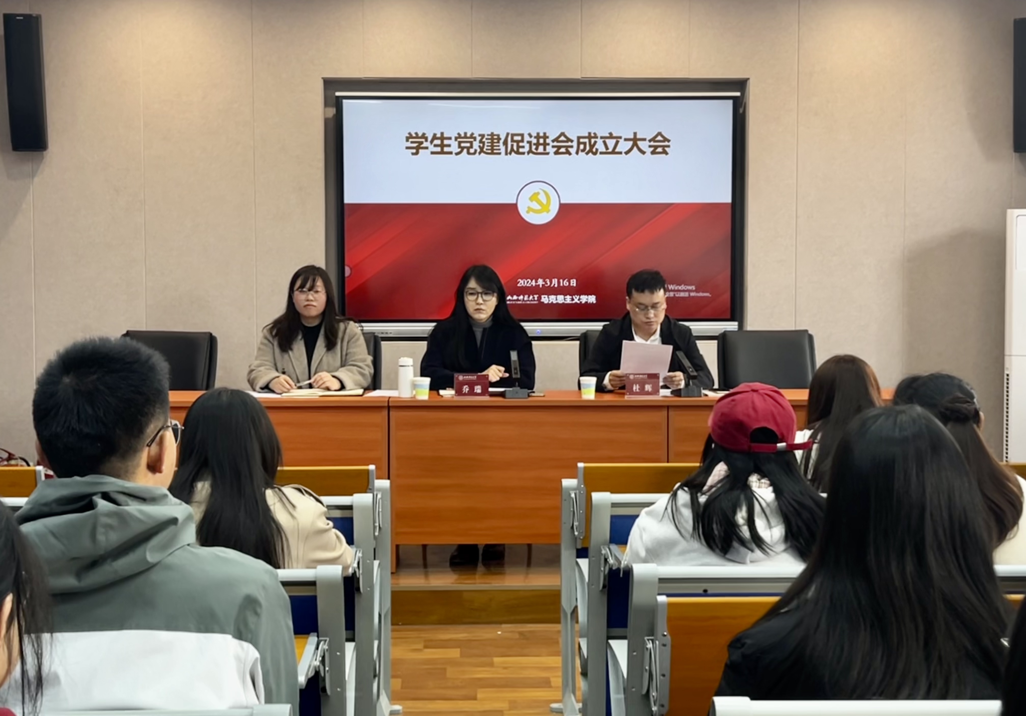 在南区1号楼505会议室召开学生党建促进会成立大会。院党委书记乔瑞、党委副书记杜辉出席会议,学生党建促进会成员参加会议。会议由学院专职组织员安慧芳主持。