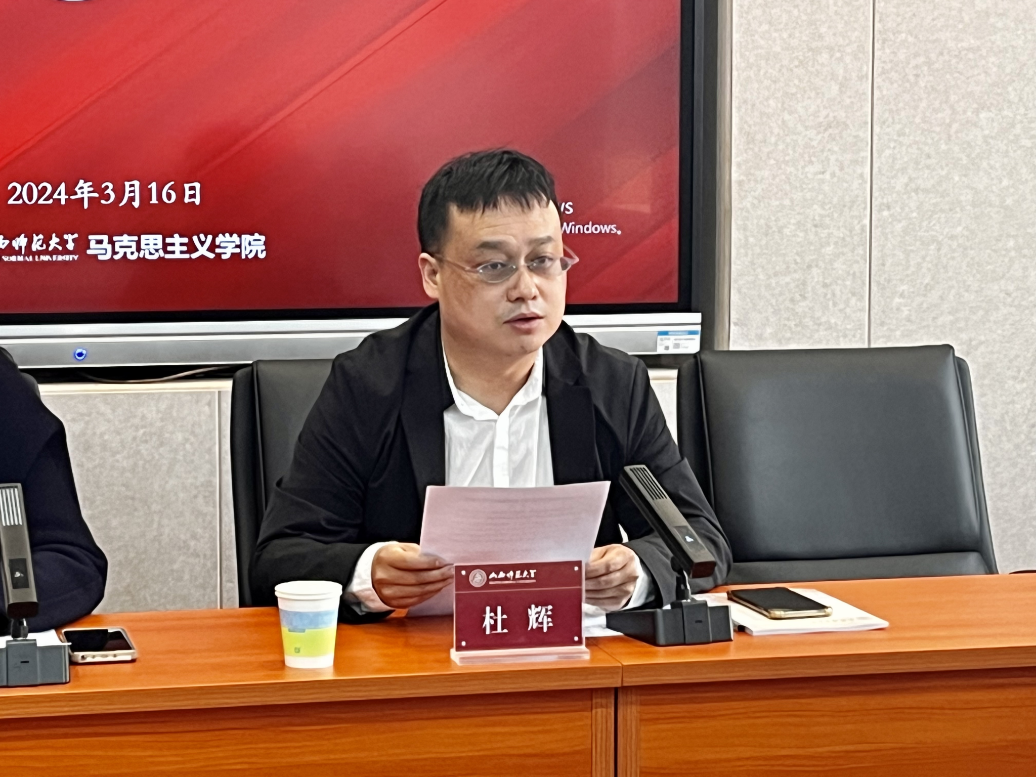 会上,院党委副书记杜辉致辞,对通过选拔成功加入学生党建促进会和学生党建促进会的正式成立表示衷心的祝贺,并在讲话中提出四点希望:一是要提高思想认识,成为引领马院青年思想进步的学生组织;二是要自觉担当责任,成为组织青年永久奋斗的先锋力量;三是要心系青年朋友,成为学院党组织联系青年最为牢固的桥梁纽带;四是要勇于自我革命,成为走在时代前列的先进组织。